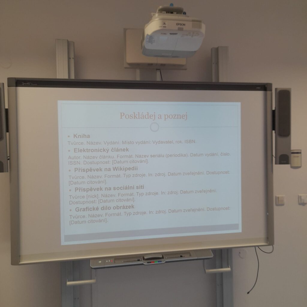 V první části programu se seznámili s teoretickými základy citační etiky podle Citační normy ČSN ISO 690:2022 a s druhy plagiátorství.