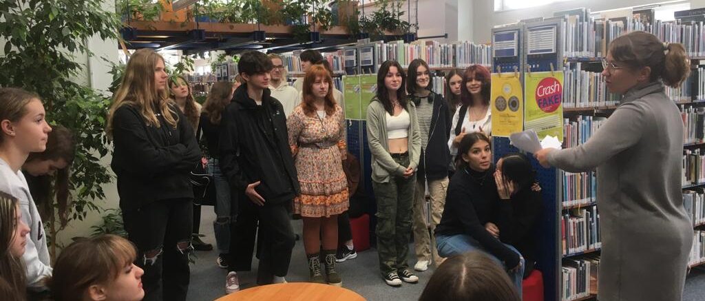 Na začátku listopadu měli žáci 1. ročníků OA možnost navštívit Krajskou knihovnu v Karlových Varech. Program návštěvy se skládal ze dvou částí, v té první se žáci dověděli základní informace o fungování knihovny. Prohlédli si oddělení časopisů, regionální literatury, beletrie a odborné literatury. Žáci měli možnost zjistit, jak funguje katalog knihovny, jak jsou v něm knihy řazené, a ve dvojicích si získané informace ověřili i prakticky, když museli vyhledat konkrétní knihu.